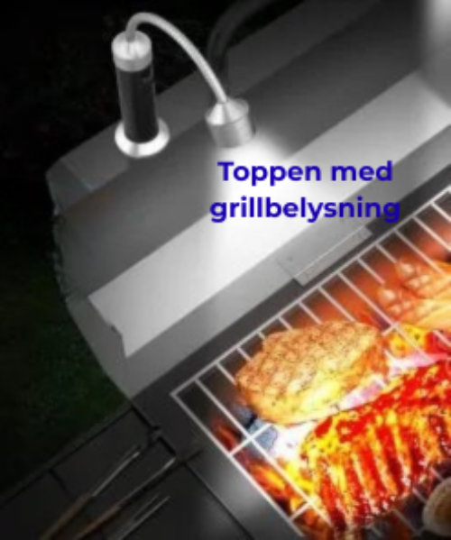 De ljusstarka LED-lamporna lyser upp hela grillytan, vilket gör det enkelt att hålla koll på maten och grilla med precision även när det är mörkt ute.
