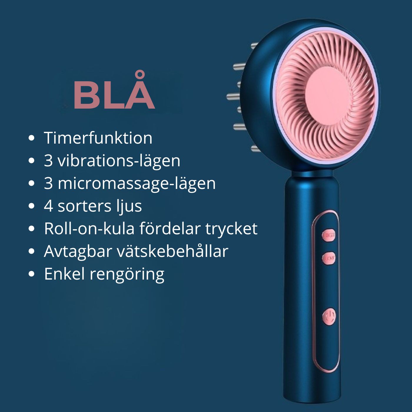 Funktioner: Skonsam men effektiv massage som aktiverar hårsäckarna och ger näring till hårbotten.