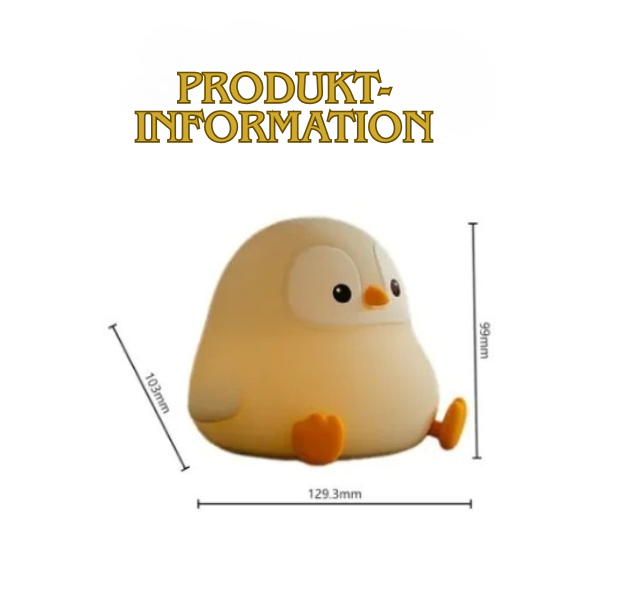 Låt ditt barn somna med ett leende tillsammans med vår mjuka och trådlösa pingvin-nattlampa. Den är tillverkad i silikon, PC och ABS – slitstark men ändå mjuk nog att krama.
