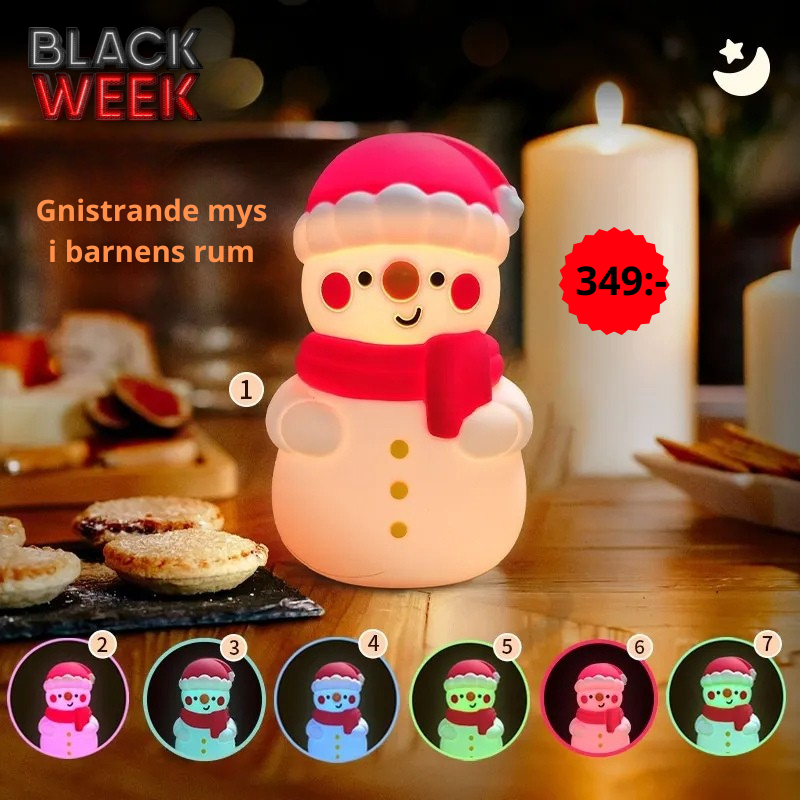 Låt ditt hem glimma av vintermys! Snögubbens nattlampa sprider ett varmt, tryggt och sagolikt ljus som gör varje kväll lite mjukare och lite mer magisk.